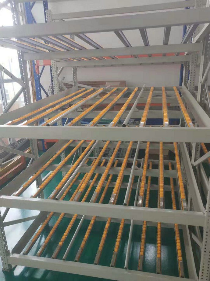 流利條貨架是一種輕型的先進(jìn)先出式貨架,貨物從貨架的背后放入,前面取出,它一般同標(biāo)準(zhǔn)塑料周轉(zhuǎn)箱或紙箱配合使用,空間利用率達(dá)50%。廣泛應(yīng)用于倉(cāng)庫(kù)、工廠裝配車間及各種配送中心。