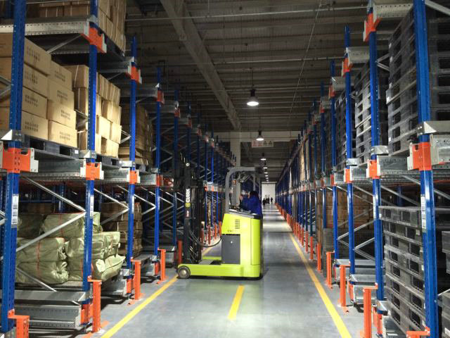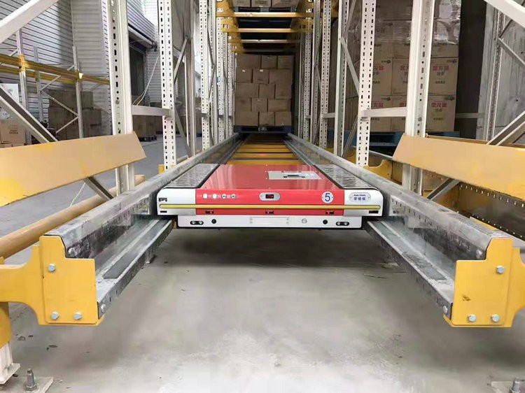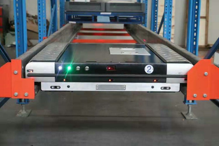 穿梭車貨架系統(tǒng)的使用非常方便,首先用叉車將穿梭車放入軌道的前端,軌道的截面為傾斜狀,方便將小車置入,然后將貨物放在軌道上的初始位置,這時(shí)操作遙控器按下自動(dòng)入庫(kù)鍵即可將帶有托盤的貨物運(yùn)入巷道深處完成存儲(chǔ)的動(dòng)作。取貨時(shí)同時(shí)將小車置入軌道的初始位,操作遙控器按下自動(dòng)出庫(kù)鍵,穿梭車將貨物搬運(yùn)至軌道端頭,叉車將其取下,完成出庫(kù)動(dòng)作,然后轉(zhuǎn)向下一個(gè)通道作業(yè)。穿梭車還能夠自動(dòng)進(jìn)行A/B面切換,實(shí)現(xiàn)穿梭小車在軌道的兩端存取貨。